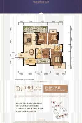 户型齐全,主打户型方正,主卧朝南,双阳台四居