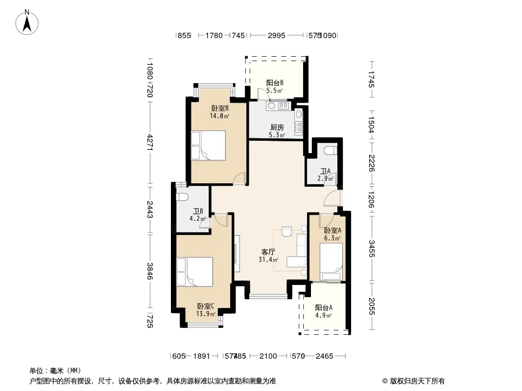 户型齐全,主打户型方正,明卫,明厨,双阳台,双卧朝南三居