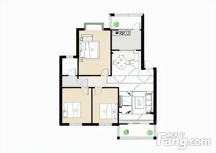 户型齐全,主打户型方正,明厨,双卧朝南三居