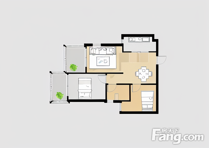 户型齐全,主打明厨,明卫,客厅朝南,全明格局,主卧朝南二居