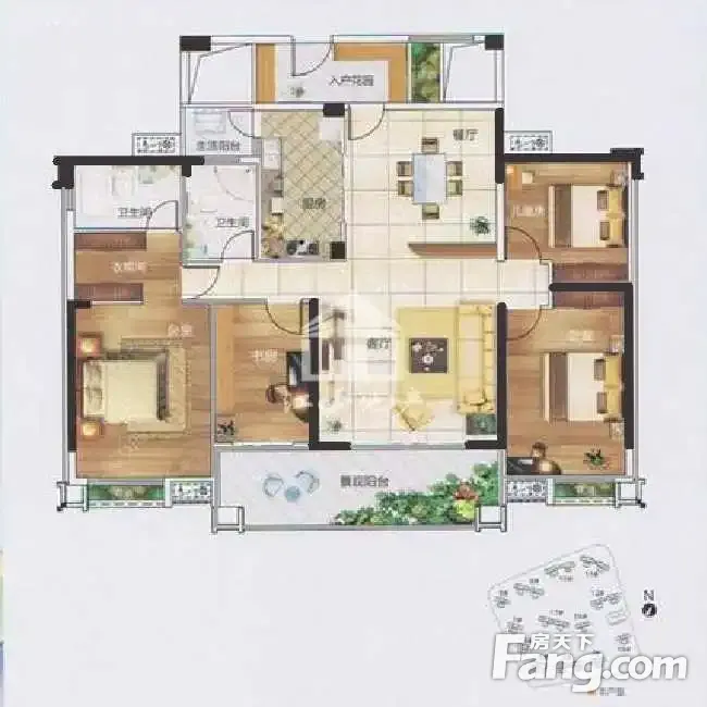 户型齐全,主打户型方正,双阳台四居