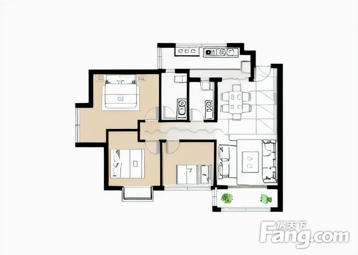户型齐全,主打明厨,双卧朝南三居