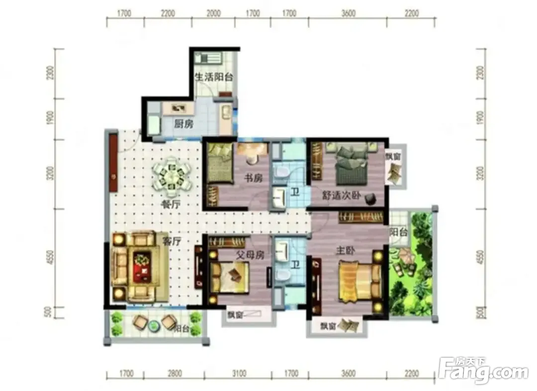 户型齐全,主打户型方正,明厨,明卫,主卧朝南五居