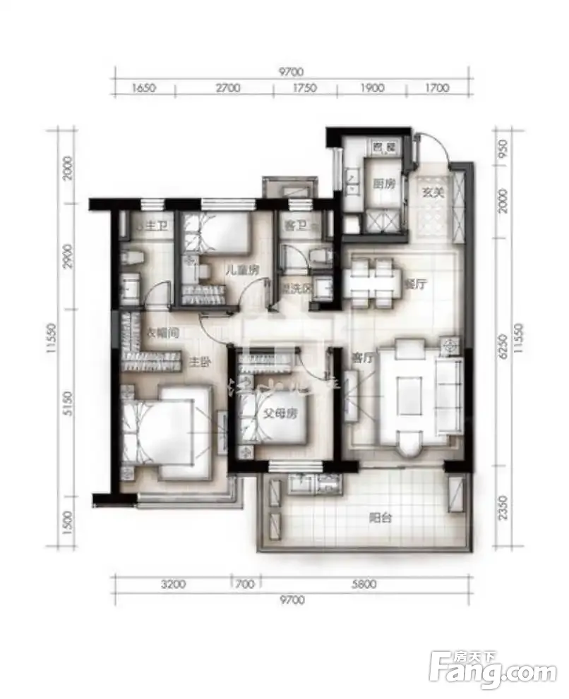 户型齐全,主打户型方正,主卧带卫四居