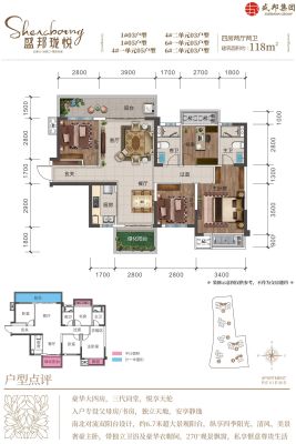 盛邦珑悦户型主要有98平-108平的南北通透,全明格局的三居 、118平-128平的南北通透,全明格局的四居 。