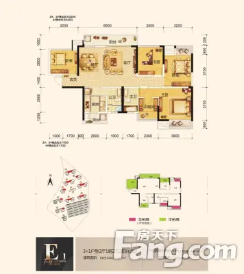 户型齐全,主打户型方正,高附赠空间四居