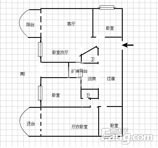 户型齐全,主打明卫,明厨,客厅朝南四居