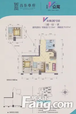 昌泰尊府户型主要有72平-101平的动静分离,客厅朝南的三居 、41平-90平的南北通透,客厅朝南的一居 、58平-69平的全明格局,客厅朝南的二居 。