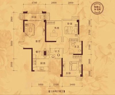 户型齐全,主打动静分离,客厅朝南三居