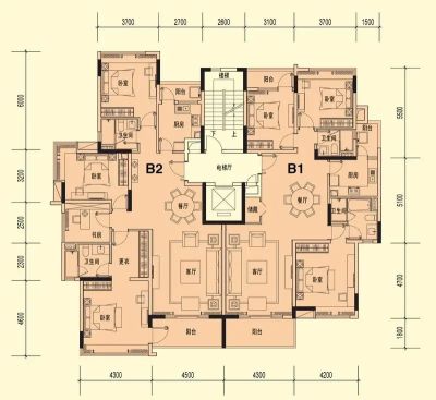 户型齐全,主打户型方正,明卫,明厨,独立衣帽间,主卧朝南四居