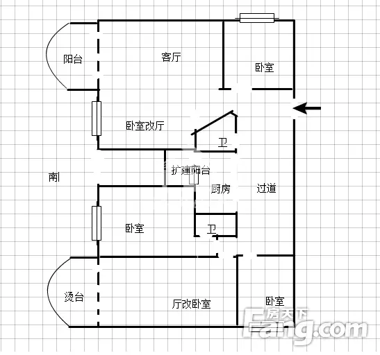 户型齐全,主打明卫,明厨,客厅朝南四居
