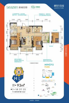 新城明昱公园3房2厅92万