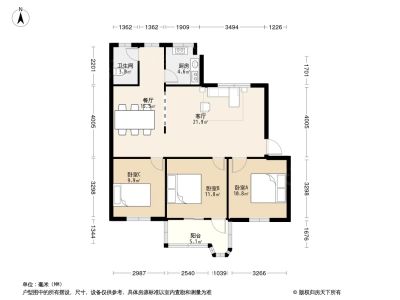 机械厂宿舍户型主要有102平-102平的户型方正,明卫,明厨,客厅朝南,双卧朝南的三居 。