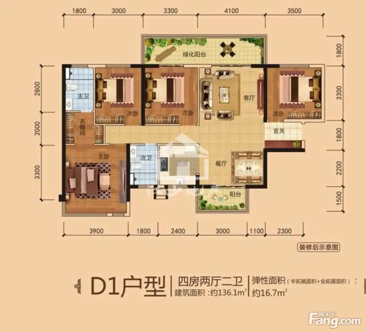 户型齐全,主打主卧带卫,双阳台四居