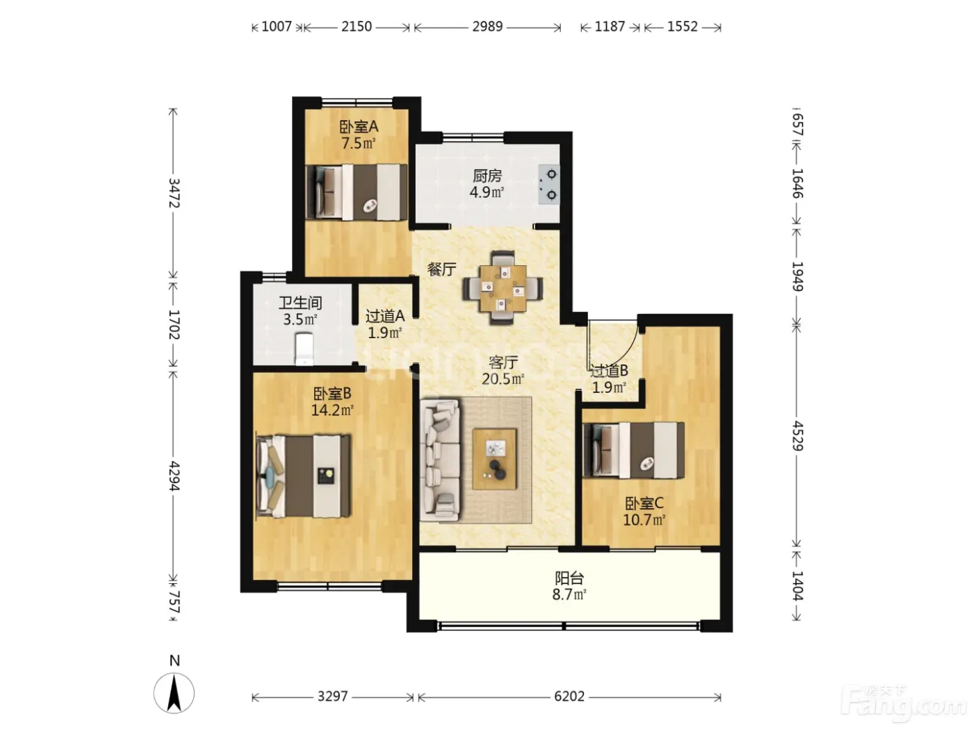 户型齐全,主打南北通透,全明格局三居