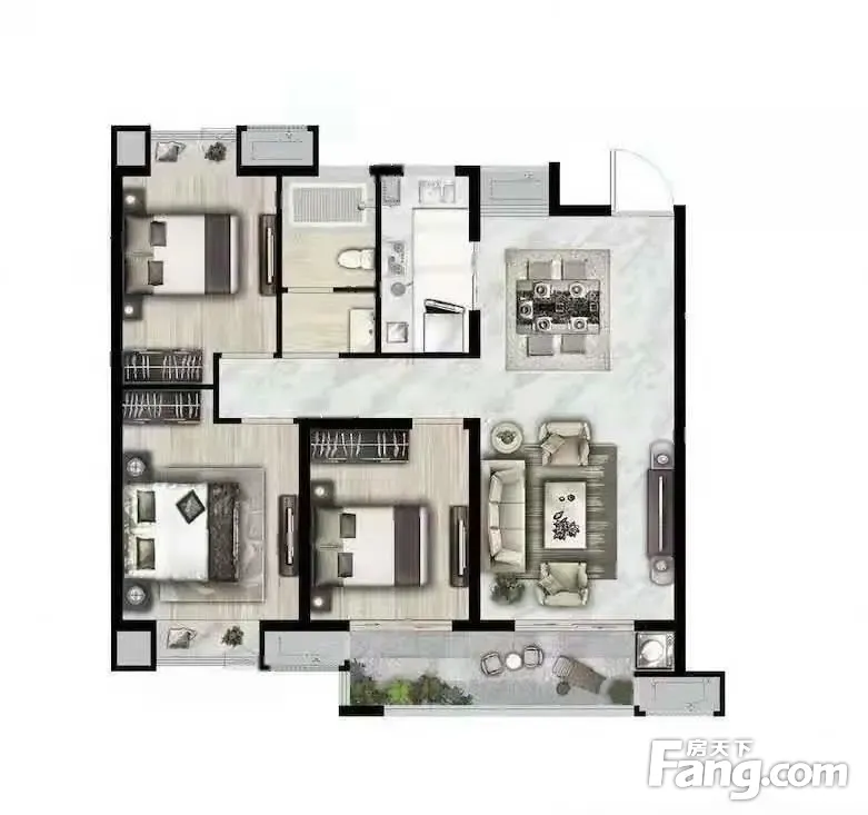 户型齐全,主打户型方正,明卫,明厨,主卧朝南三居