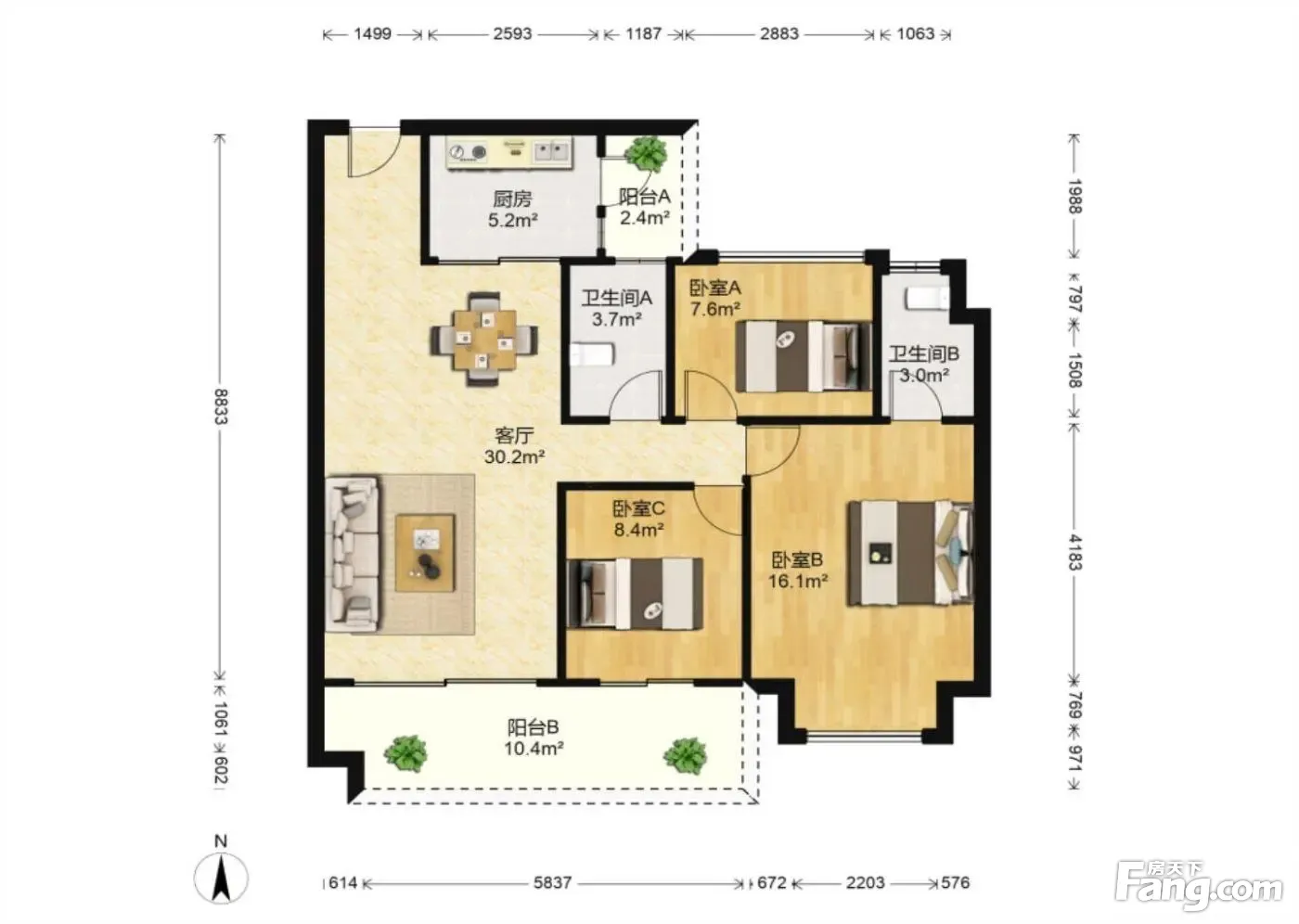 户型齐全,主打户型方正,明卫,双阳台,主卧朝南三居