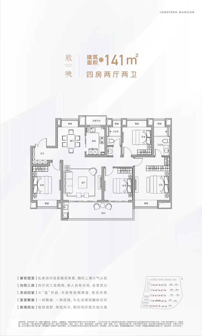 炜赋·龙腾华府户型主要有103平-126平的南北通透,全明格局的三居 、141平-141平的南北通透,全明格局的四居 。