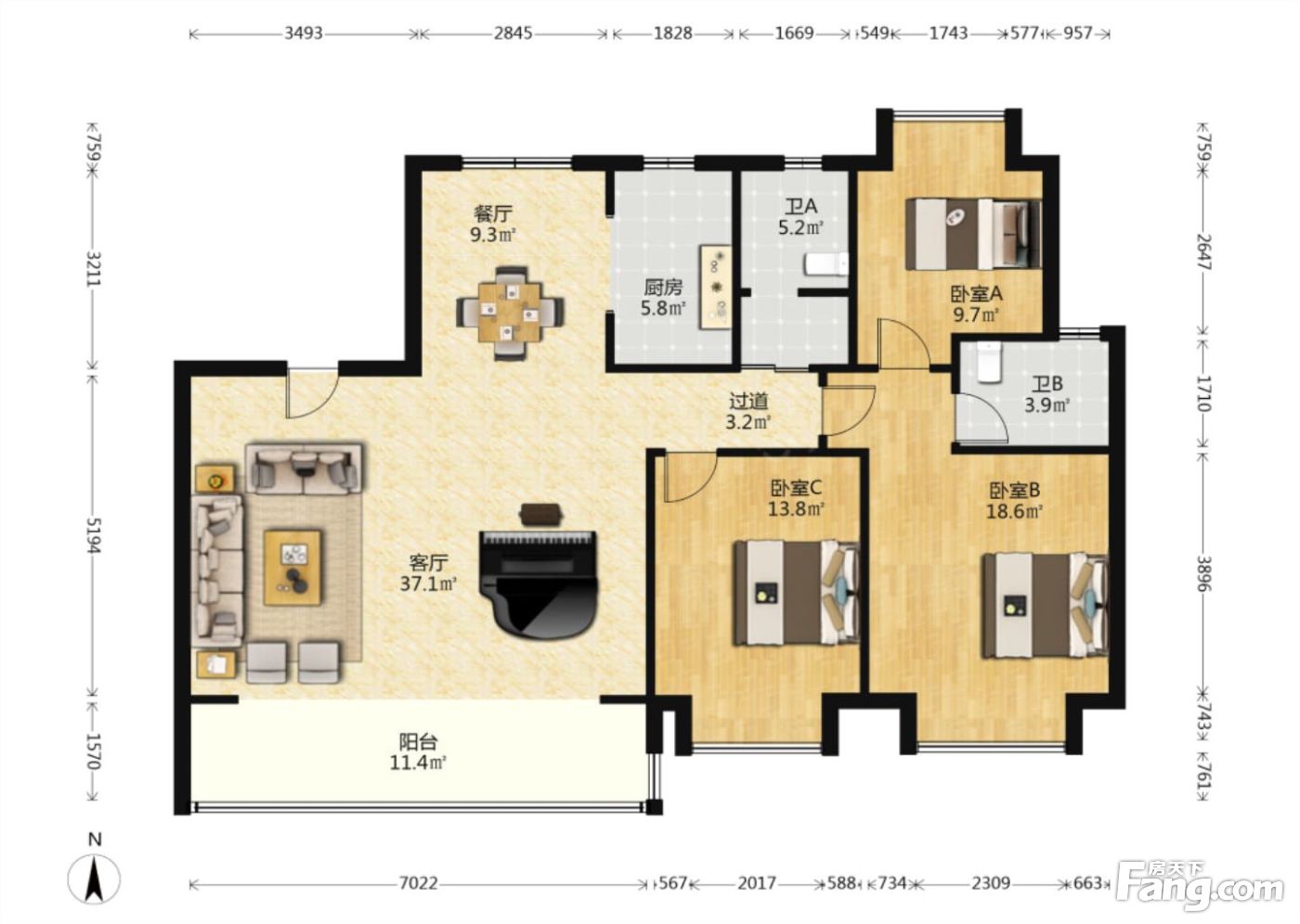户型齐全,主打南北通透,户型方正三居