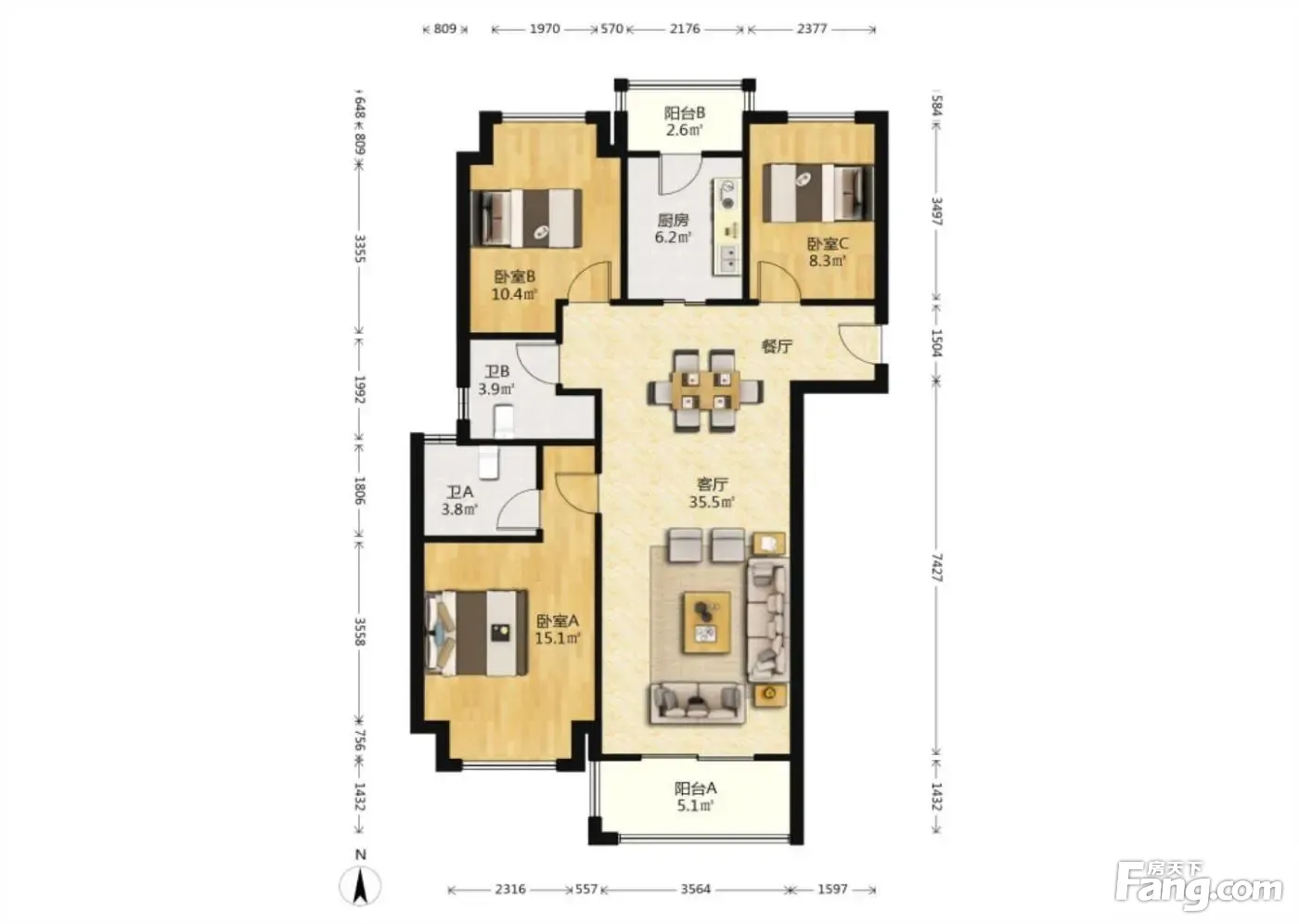 户型齐全,主打户型方正,双阳台,双卧朝南三居