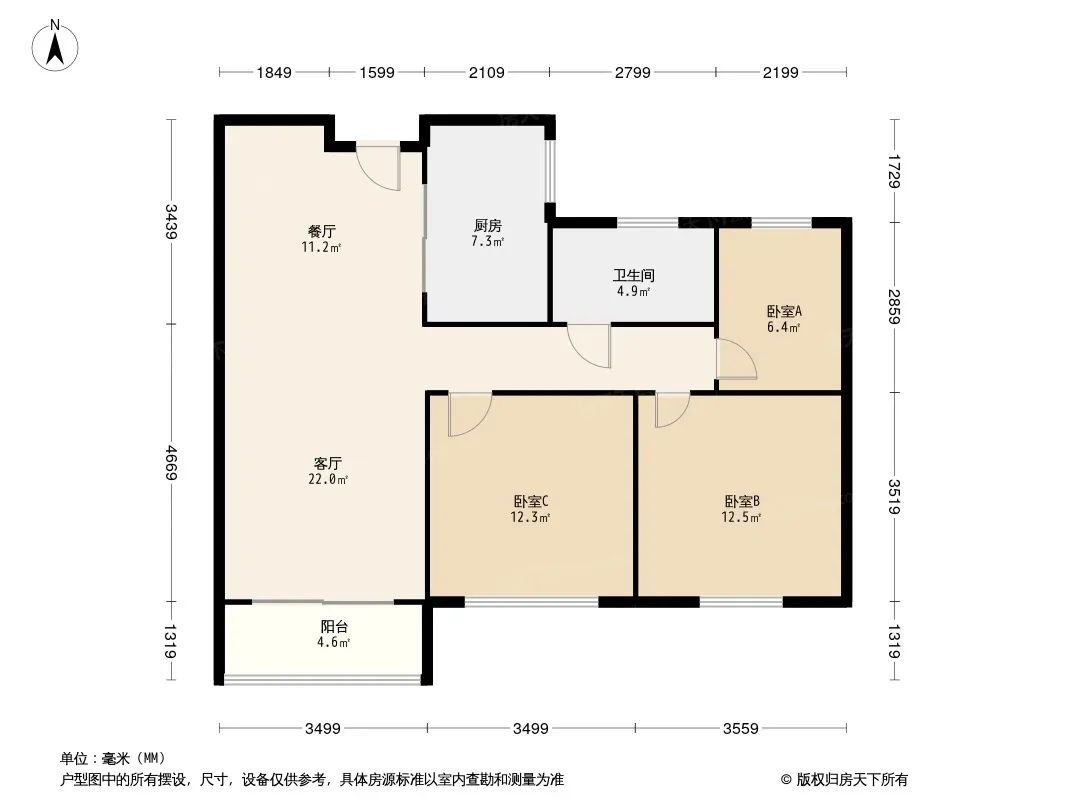 户型齐全,主打南北通透,全明格局,客厅朝南,卧室朝南三居