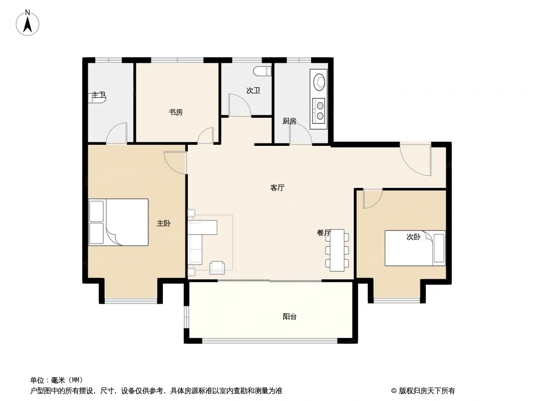 户型齐全,主打南北通透,采光充足三居