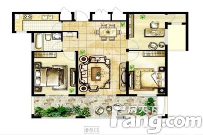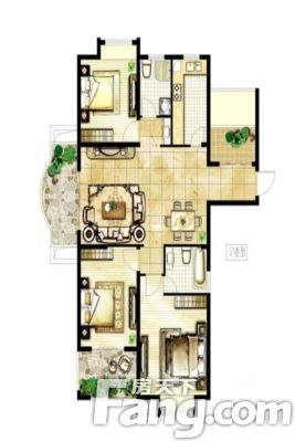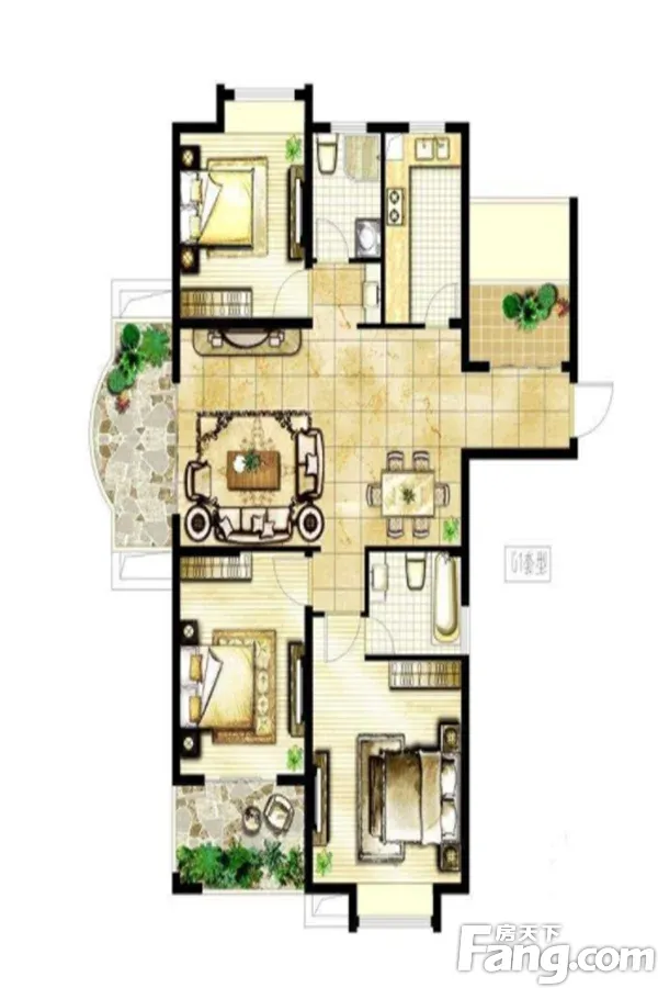 户型齐全,主打户型方正,卧室朝南,L型厨房,带露台三居
