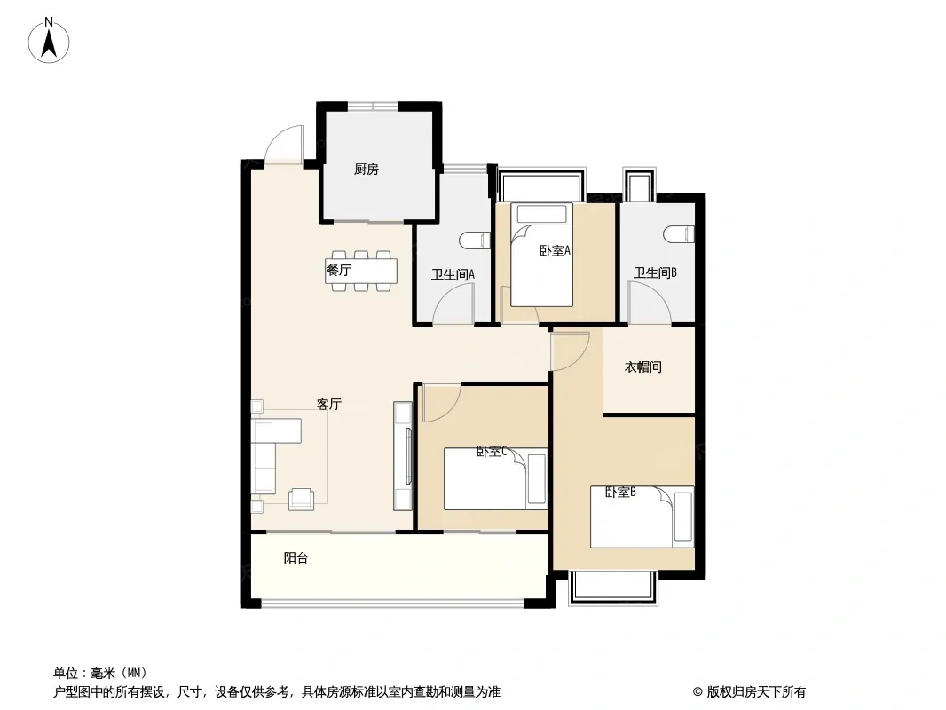 户型齐全,主打全明格局,三开间朝南三居