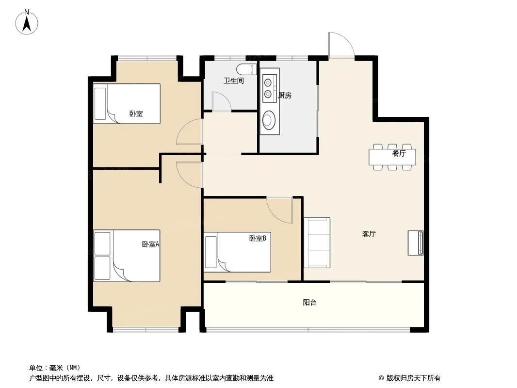 户型齐全,主打南北通透,户型方正三居
