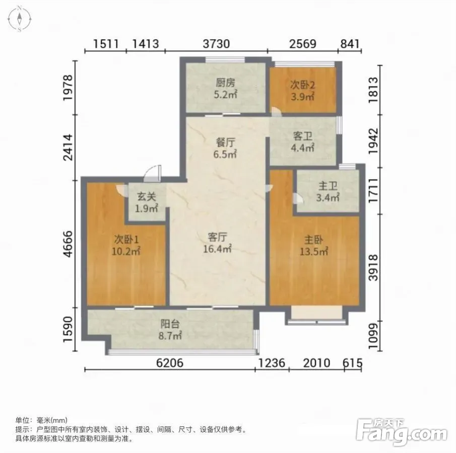 户型齐全,主打明卫,明厨,双卧朝南三居
