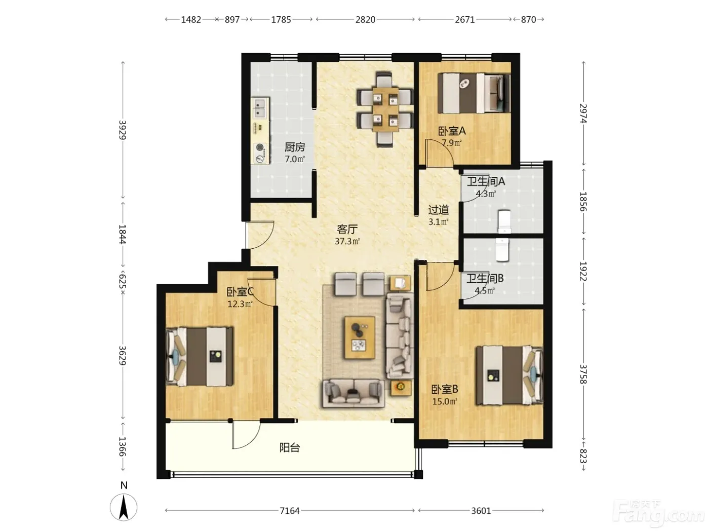户型齐全,主打南北通透,户型方正三居