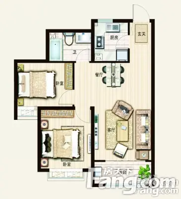 户型齐全,主打明厨,客厅朝南二居