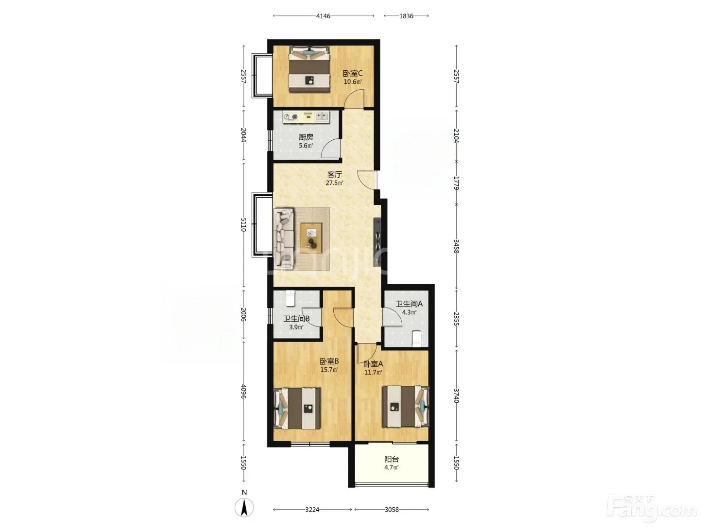 3室1厅2卫