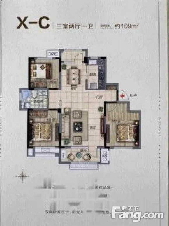 户型齐全,主打南北通透,全明格局,客厅朝南三居