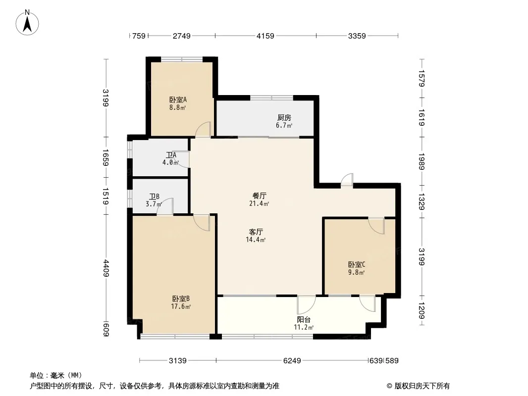 户型齐全,主打南北通透,全明格局三居