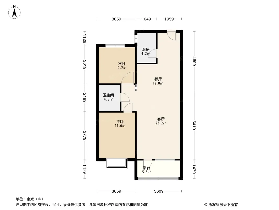 户型齐全,主打南北通透,采光充足二居