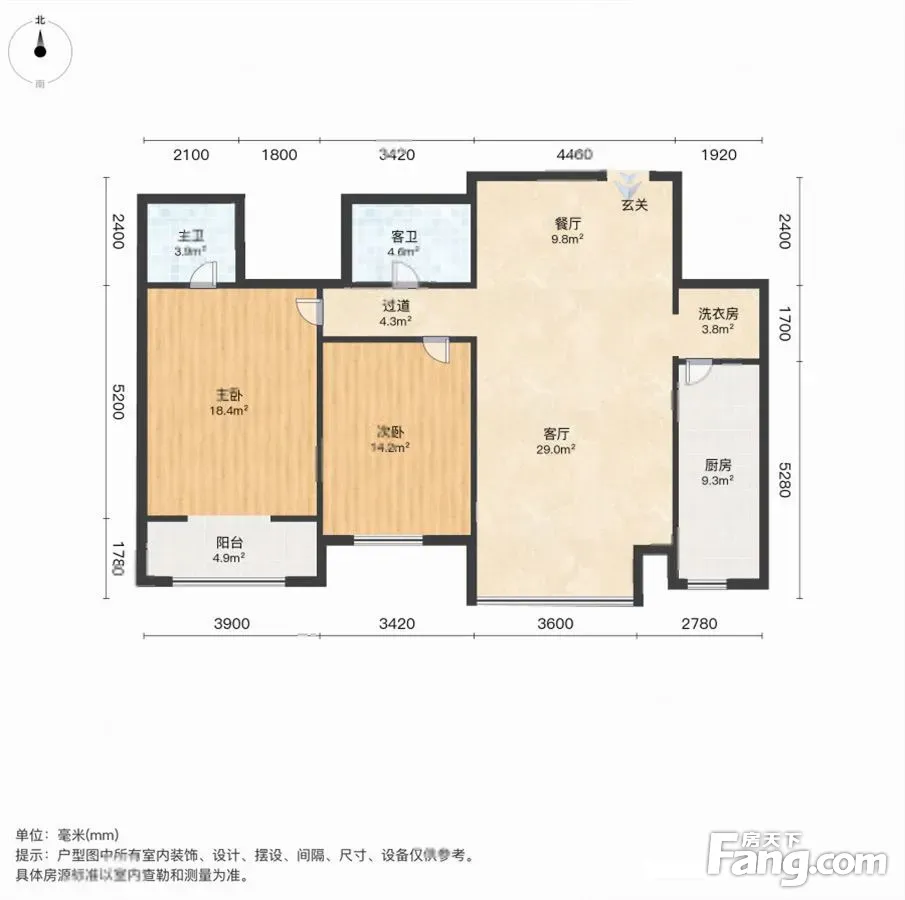 户型齐全,主打南北通透,客厅朝南,主卧朝南二居