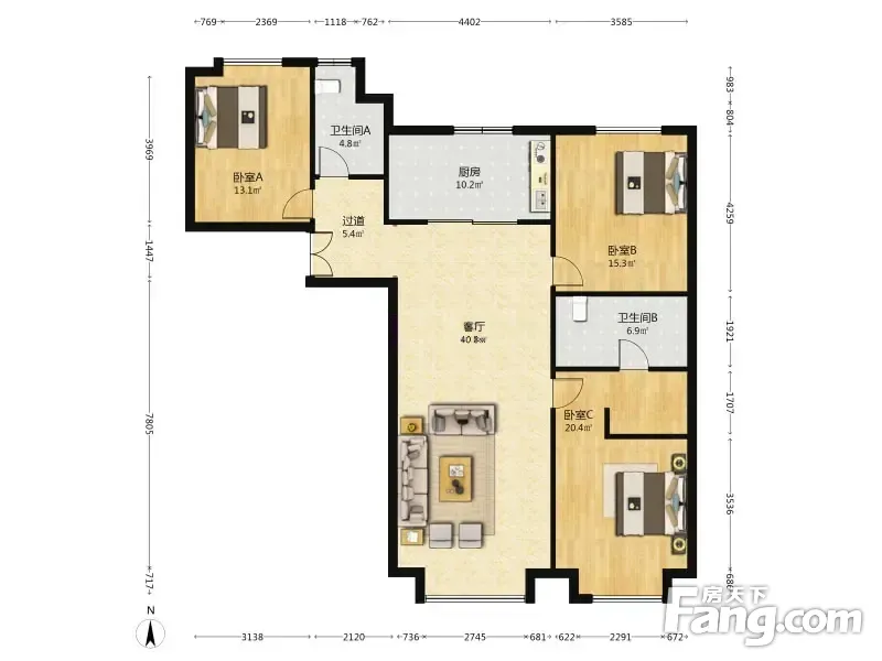 房屋拥有相对宽松的尺寸,布局通透,动静分离,设计豪华