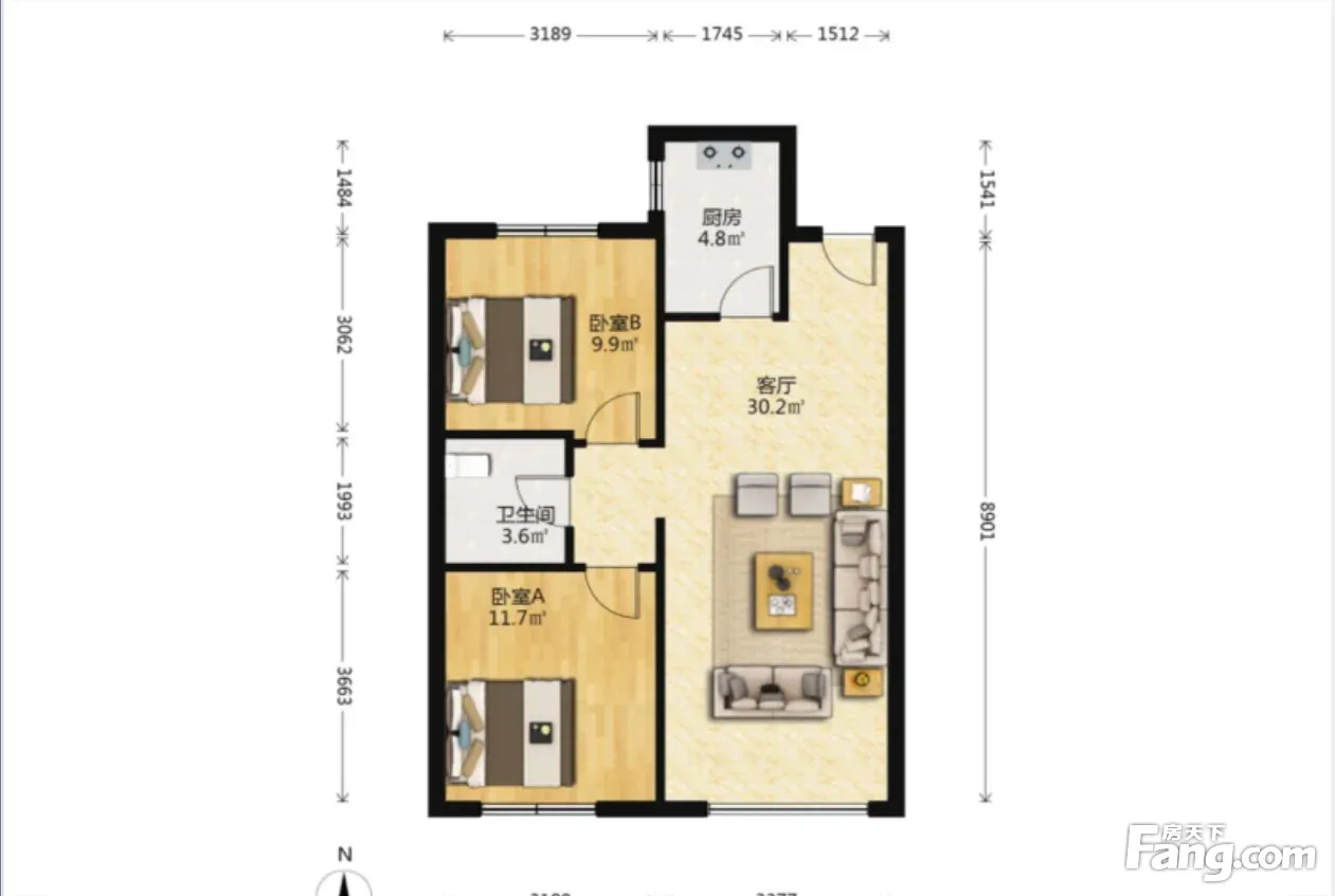 本房户型南北卧南客厅,通透方正,居住舒适。