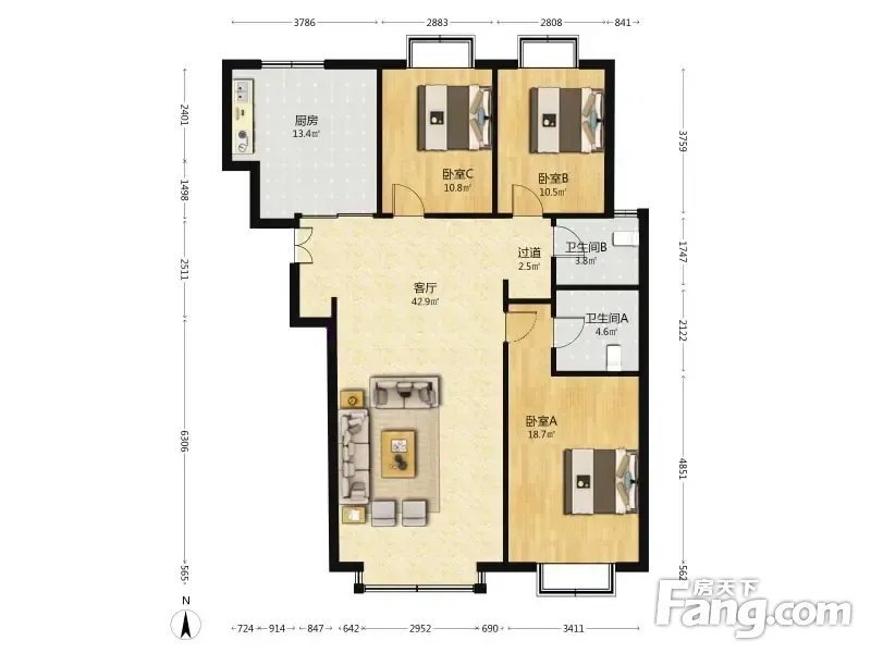 3室2厅1卫