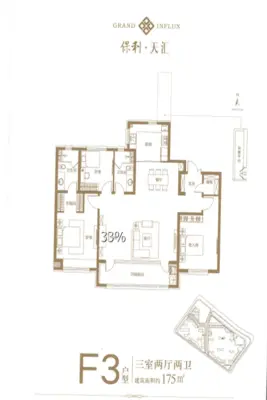保利天汇 177平 小区中心便宜 精装修拎包入住 地铁口