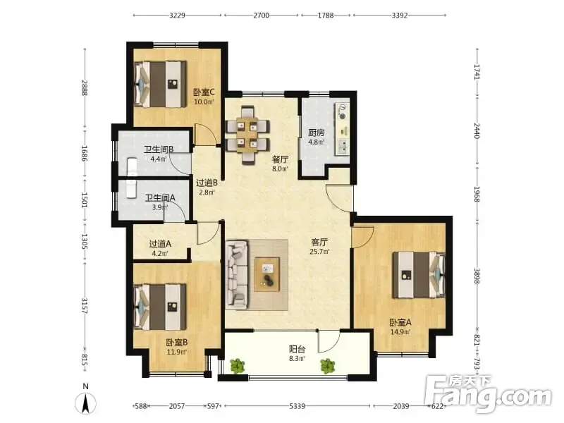 户型齐全,主打南北通透,户型方正三居