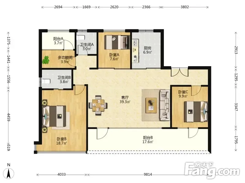 户型齐全,主打南北通透,全明格局四居
