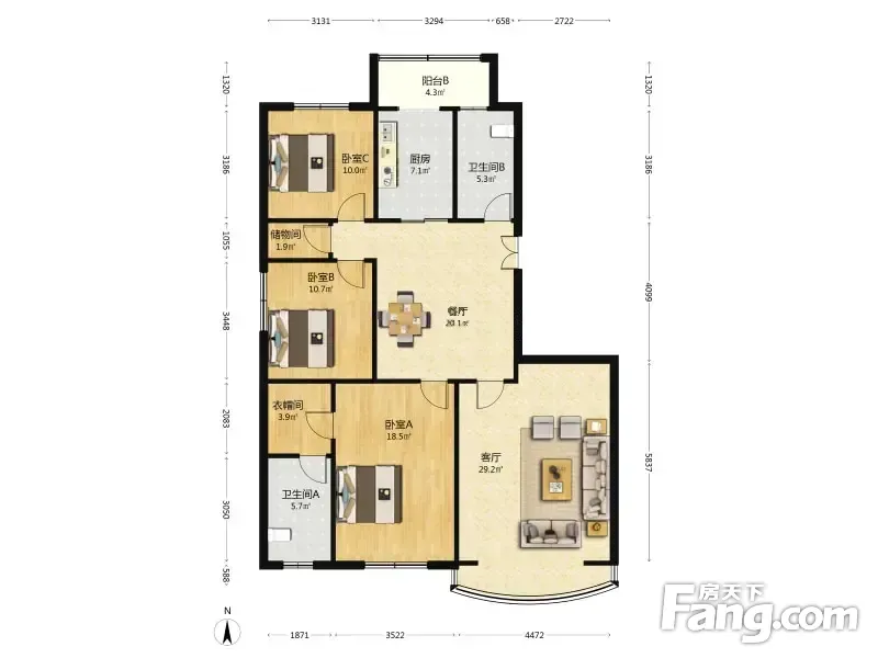 户型齐全,主打户型方正,独立衣帽间,明卫,双阳台,主卧朝南三居