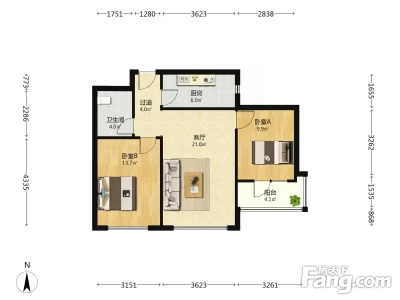康大凤凰 2室2厅 89.69平