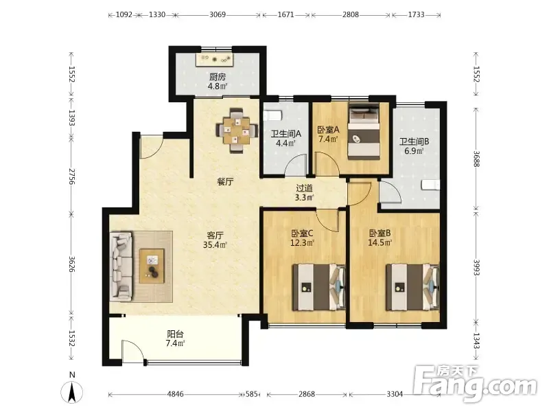 保利林语镜 3室1厅 118.1平
