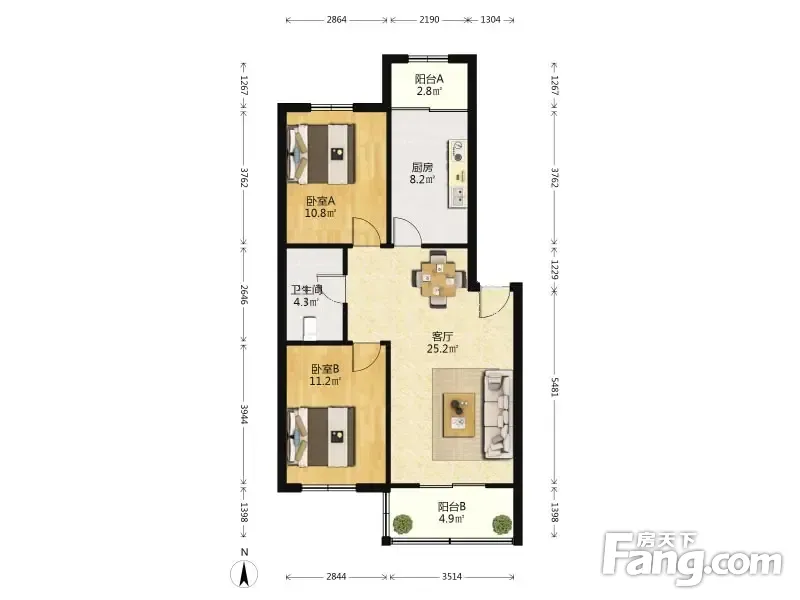 户型齐全,主打户型方正,明厨,主卧朝南二居