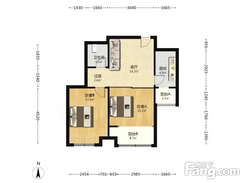 鸿润嘉园 2室1厅 78.69平