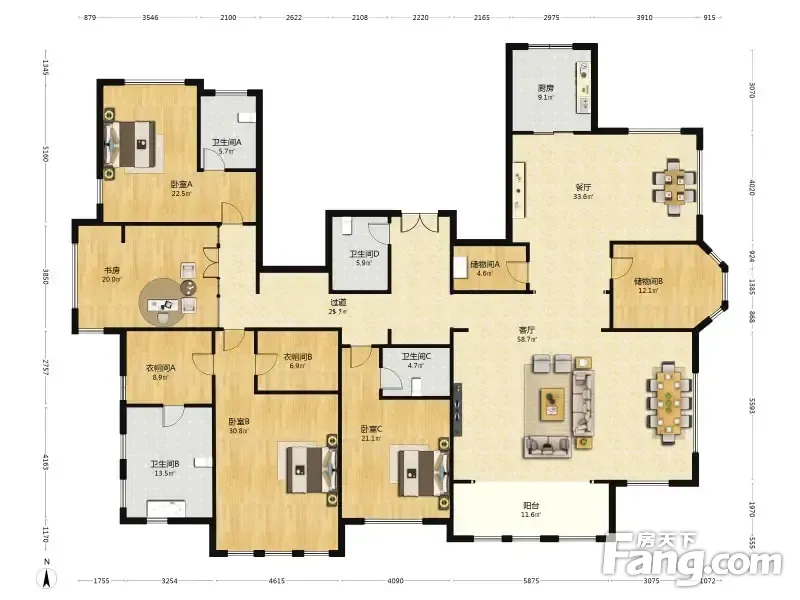 房屋拥有相对宽松的尺寸,布局通透,动静分离,设计豪华