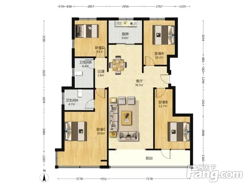 户型齐全,主打南北通透,全明格局四居